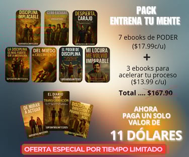 Un entrenamiento mental intensivo compuesto por 10 eBooks que fortalecen tu disciplina, enfoque y claridad.
